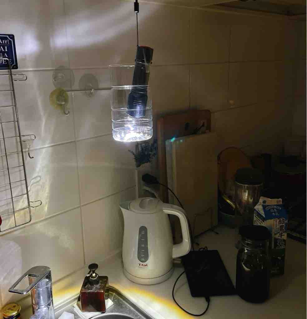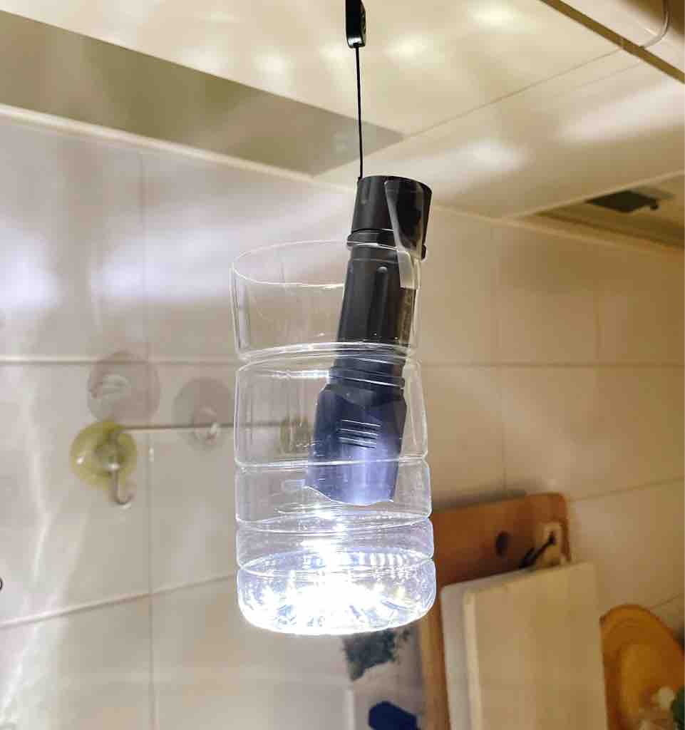 懐中電灯にペットボトルを組み合わせて